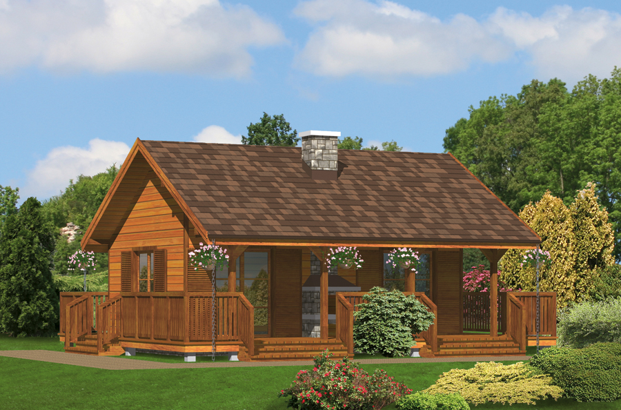 Niewielką powierzchnię domu przeznaczonego dla dwóch osób, rekompensuje duży, drewniany taras o powierzchni ponad 50 mkw. Na taras, otaczający budynek ze wszystkich stron, można wyjść z prawie każdego pomieszczenia domu: korytarza, sypialni, pokoju dziennego (dwoje drzwi). W znacznej części zadaszony, stanowi istotne powiększenie salonu, jednoprzestrzennie połączonego z kuchnią. Dodatkową atrakcją jest uwzględnienie na tarasie grilla i stworzenie w ten sposób wspaniałego miejsca letnich spotkań, nawet dla kilkunastu osób (niezależnie od pogody). Kominek w pokoju dziennym wykorzystywany jest również do ogrzewania pomieszczeń. Istnieje możliwość dowolnej aranżacji układu pomieszczeń.