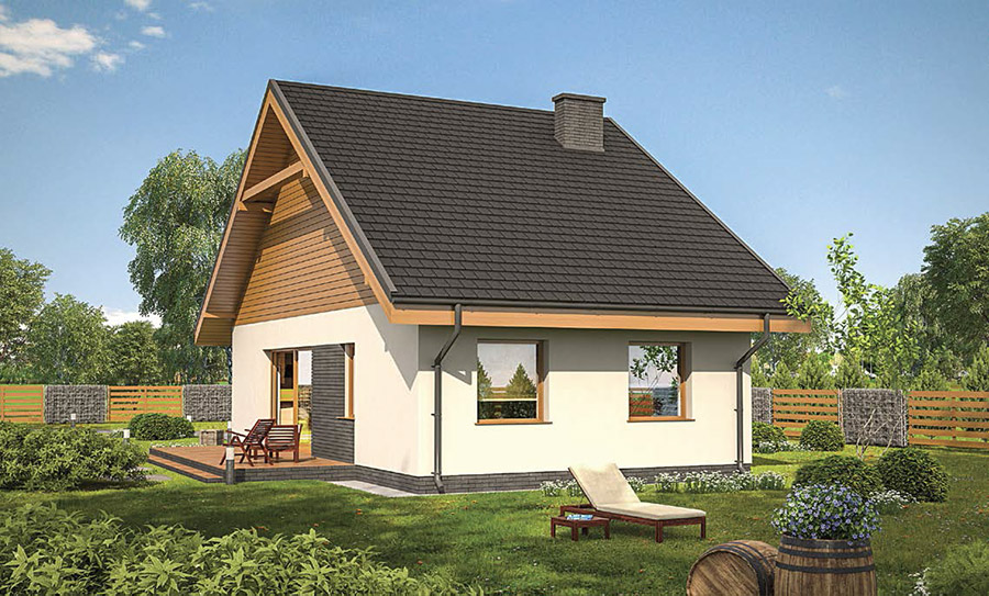 Elastyczny niewielki, kompaktowy dom dla młodej, rozwojowej rodziny. Jego parter to wygodne mieszkanie dla 2 osób o powierzchni około 64 m kw. Gdy rodzina się powiększy, adaptując 45-metrowe poddasze, można powiększyć przestrzeń, aż do blisko 110 m2. Jest to możliwe dzięki zaplanowanemu przez architekta miejscu na schody. Dom prezentuje się z zewnątrz bardzo ładnie