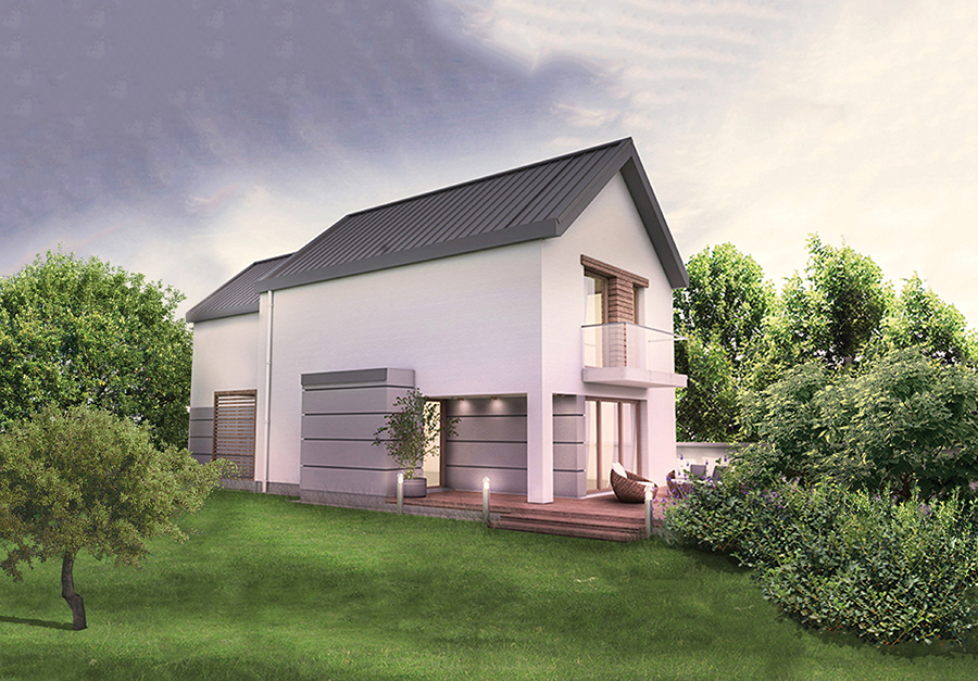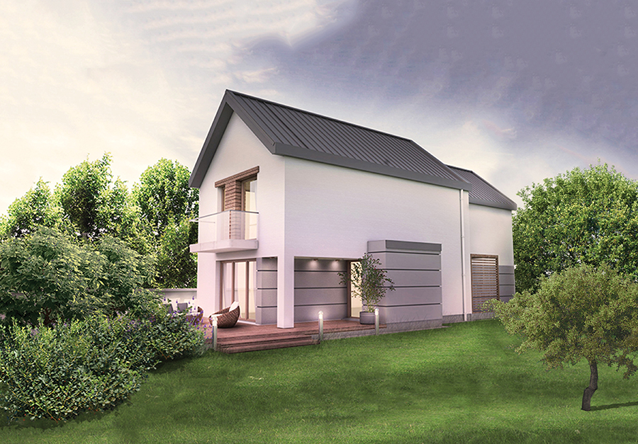 Ściany zewnętrzne: murowane, dwuwarstwowe: bloczek wapienno-piaskowy 18 cm styropian 18 cm i tynk wewnętrzny