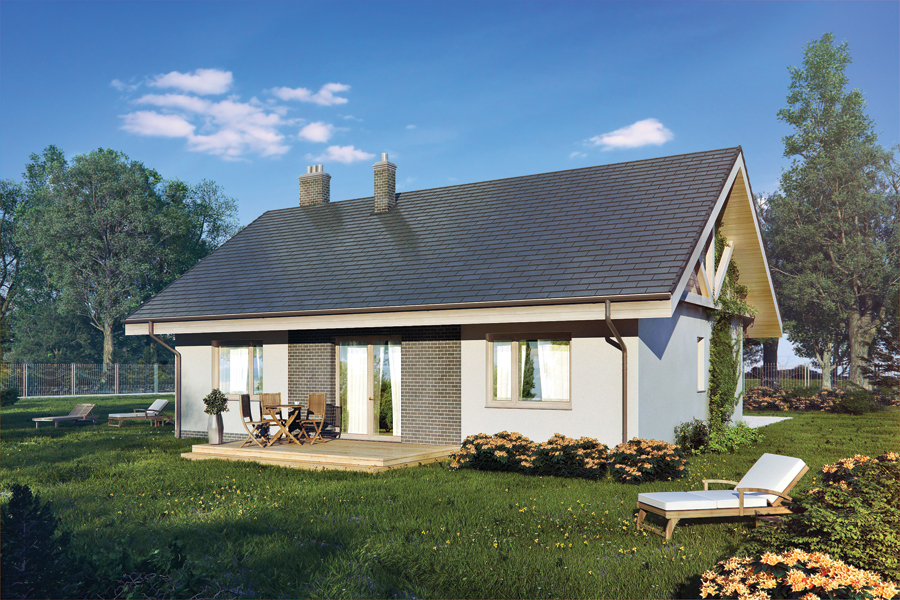 Ściany zewnętrzne: murowane, dwuwarstwowe: pustak ceramiczny 25 cm folia wiatroizolacyjna 2x wełna mineralna 6 cm i tynk wewnętrzny