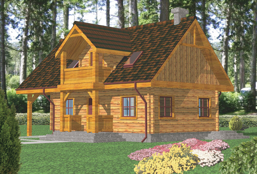 Projekt ten może stanowić spełnienie marzeń i pragnień dotyczących zamieszkania w domu drewnianym. Zaprojektowano go tak, by skutecznie służyć mieszkańcom przez cały rok. Z zewnątrz zachowuje proporcjonalny wygląd niezależnie od kierunku, z którego na nią spojrzymy. Wewnątrz wykorzystany jest klasyczny podział stref