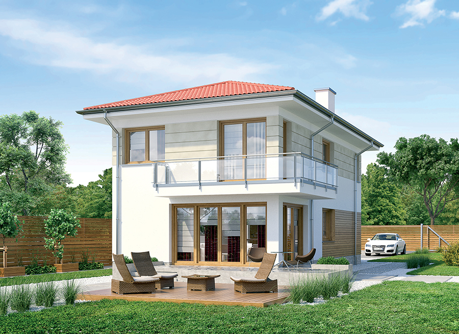 Ściany zewnętrzne: murowane, dwuwarstwowe: beton komórkowy 24 cm styropian 18-20 cm i tynk wewnętrzny