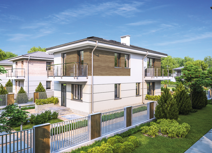 Ściany zewnętrzne: murowane, dwuwarstwowe: beton komórkowy 24 cm styropian 16-18 cm i tynk wewnętrzny