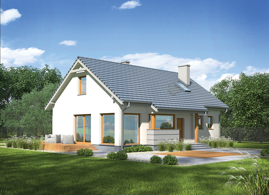 Ściany zewnętrzne: murowane, dwuwarstwowe: beton komórkowy 24 cm styropian 20-22 cm i tynk wewnętrzny