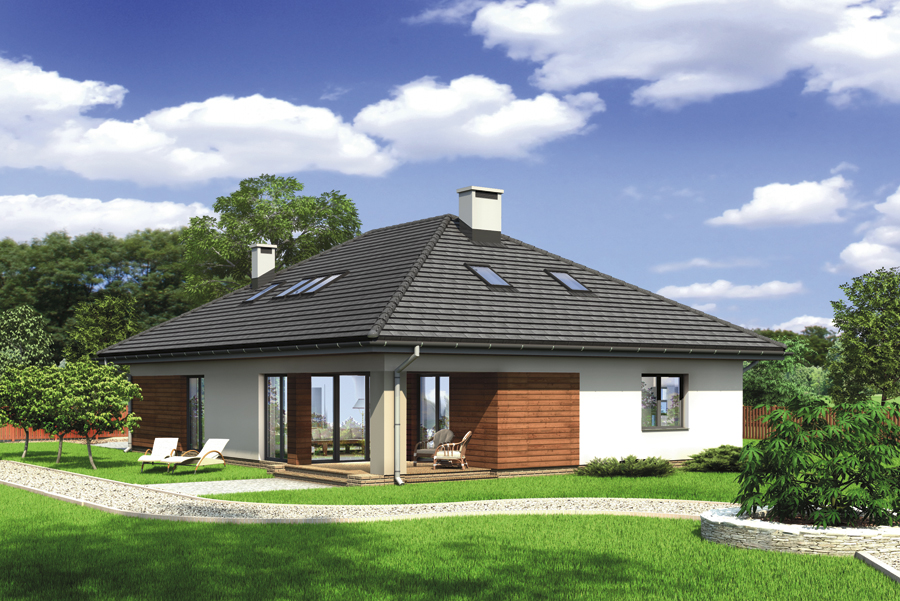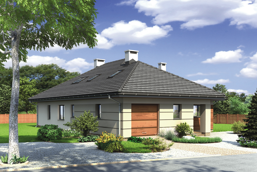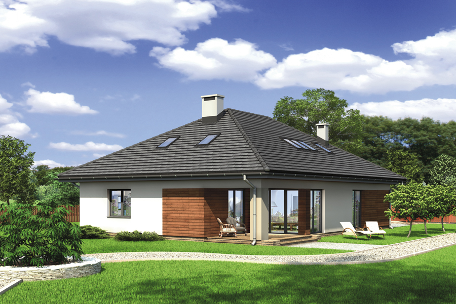 Doskonały dom do realizacji etapowej. Dzięki bogatemu programowi parteru, życie czteroosobowej rodziny może toczyć się na jednej kondygnacji. Poddasze można wykończyć w późniejszym czasie np. gdy powiększy się rodzina. W przestronnym salonie
